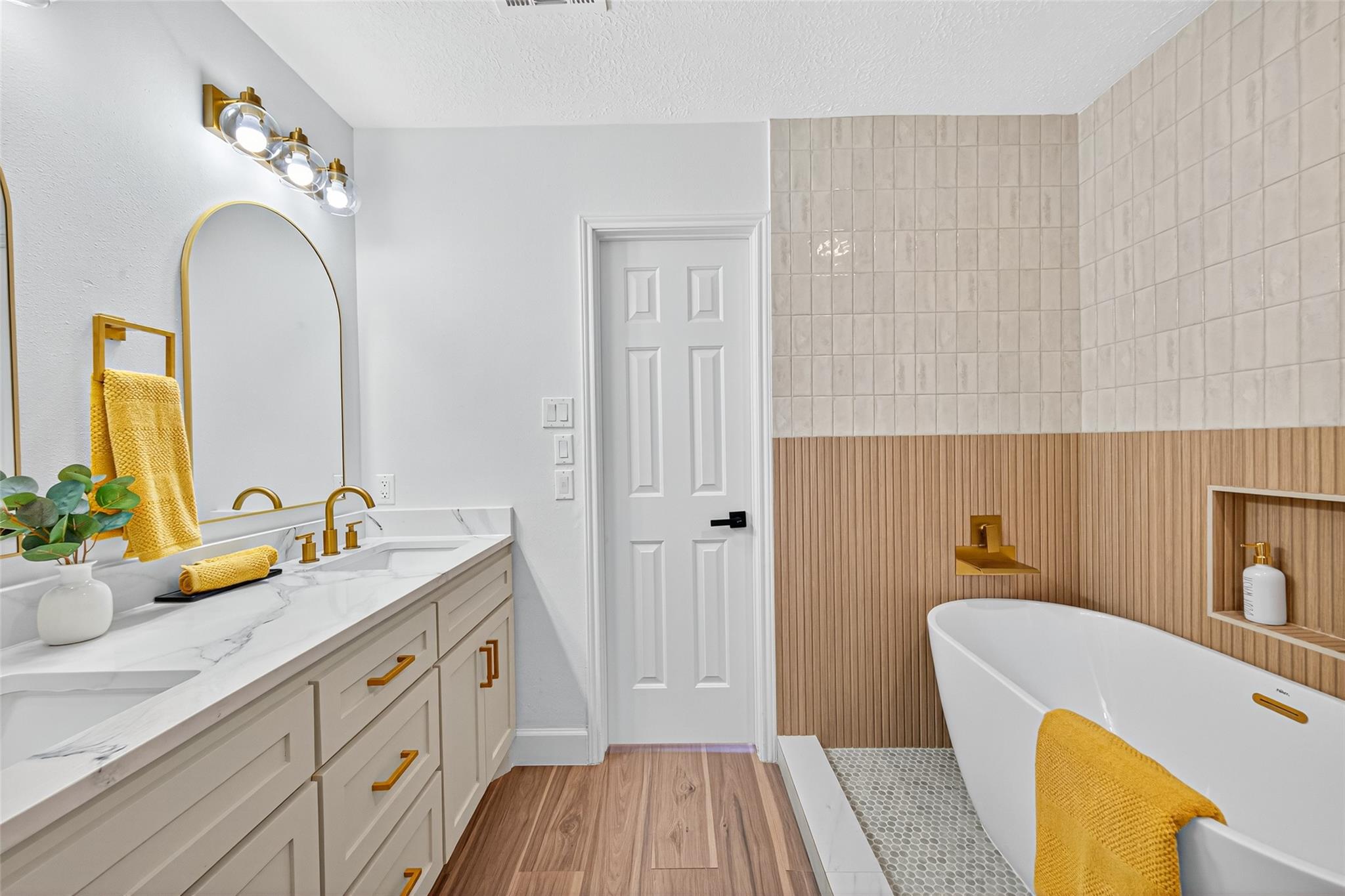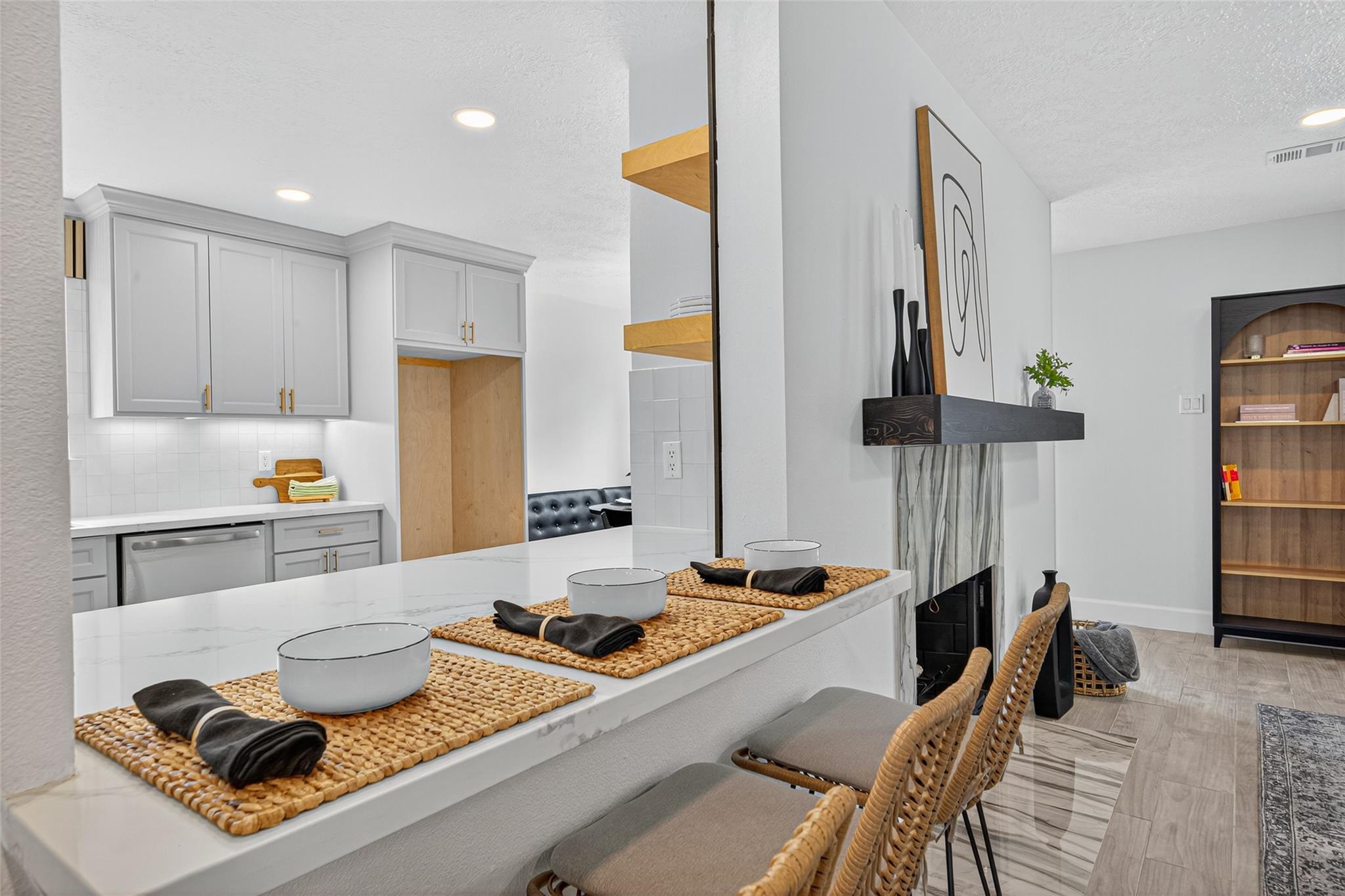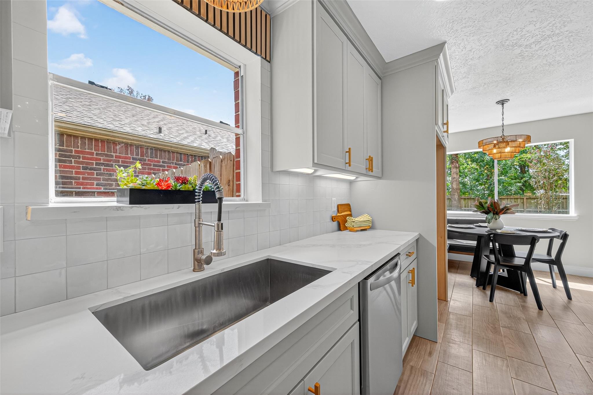 Beautifully renovated 4-bedroom, 2.5-bath home with 2,366 sq. ft. in sought-after Klein ISD. The gourmet kitchen offers quartz counters, custom cabinets, stainless steel appliances with gas range & pot filler, wine fridge, Zellige backsplash with fluted wall accents, floating shelves, and an oversized butler's pantry with backsplash & electrical. First floor features built-ins, new lighting, and a gas fireplace with porcelain surround & wood mantel. The primary suite includes 2 large walk-in closets and spa bath with freestanding tub & walk-in shower. Upstairs has oversized bedrooms, a flex/game room with walk-in closet, plus an oversized laundry & mudroom. Backyard with in-ground water feature, 2-car garage, and extended driveway for 4 cars. HOA amenities include pool, clubhouse, and tennis courts. Convenient to The Woodlands, Tomball, SH-249 & Kuykendahl. Home warranty included.
