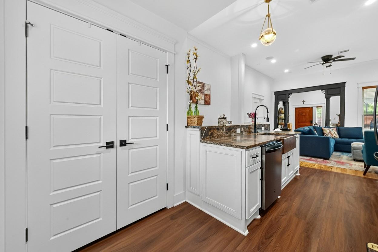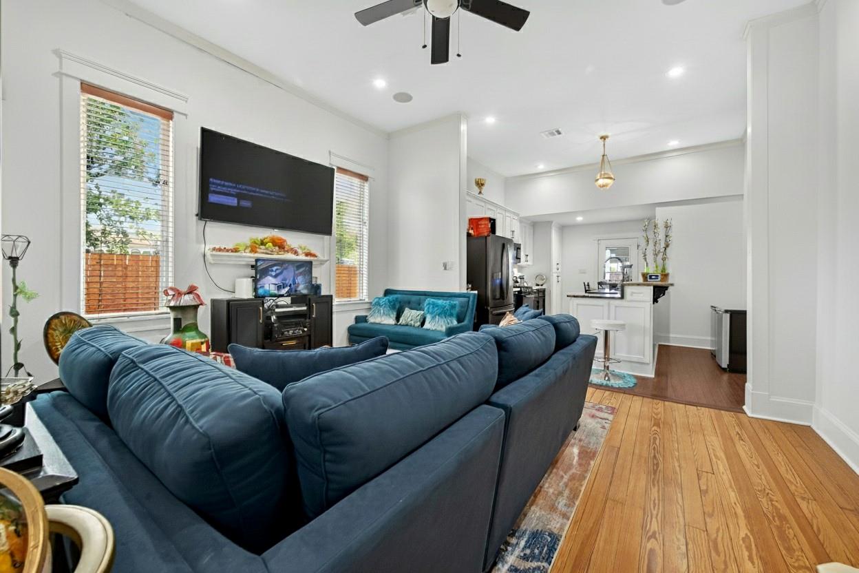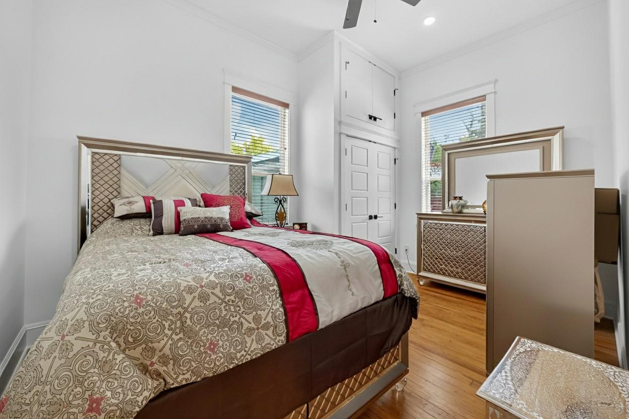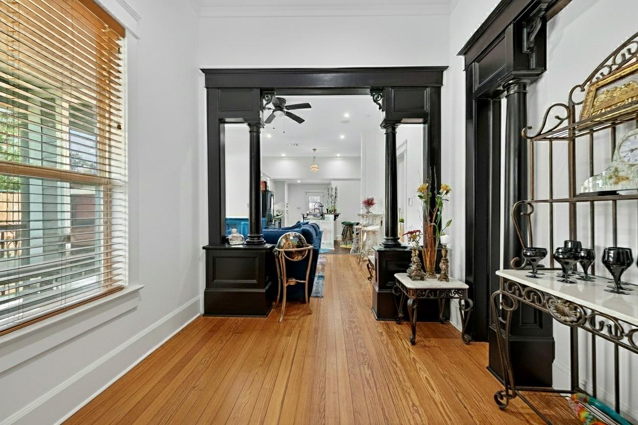 Welcome to 6828 Knox St, a beautifully renovated 2-bed, 2-bath home with garage apartment 1 bedroom one 1 bath, blending historic charm with modern finishes. The inviting wraparound porch sets the tone for a warm interior featuring soaring ceilings, original wood floors, and custom millwork. The open living area flows into a chef's kitchen with granite counters, farmhouse sink, and sleek appliances. Spacious bedrooms offer style and comfort, while spa-like baths feature dual vanities, designer tile, and a luxe soaking tub. A fully fenced yard, covered parking, and bonus storage building provide convenience. Located in a quiet neighborhood with easy access to 610, I-45, and local parks, this home offers the perfect mix of charm, updates, and location.