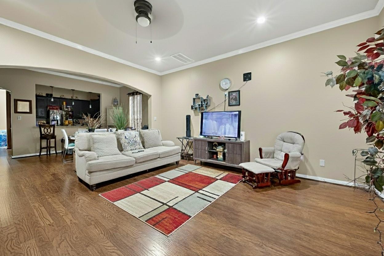Welcome to 6906 McWilliams Drive, a well-appointed duplex in a thriving Northwest Houston neighborhood. This home offers an inviting open floor plan with crown molding, recessed lighting, and wood-style flooring throughout. The spacious kitchen features granite countertops, dark cabinetry, stainless steel appliances, and pendant lighting overlooking the dining and living areas. Generous bedrooms provide comfort and storage, while updated baths showcase granite vanities and modern finishes. With private parking, fenced yard space, and built-in shelving for added charm, this property is both stylish and functional. Conveniently located near highways, schools, shopping, and parks, it's a prime opportunity for homeowners or investors alike.